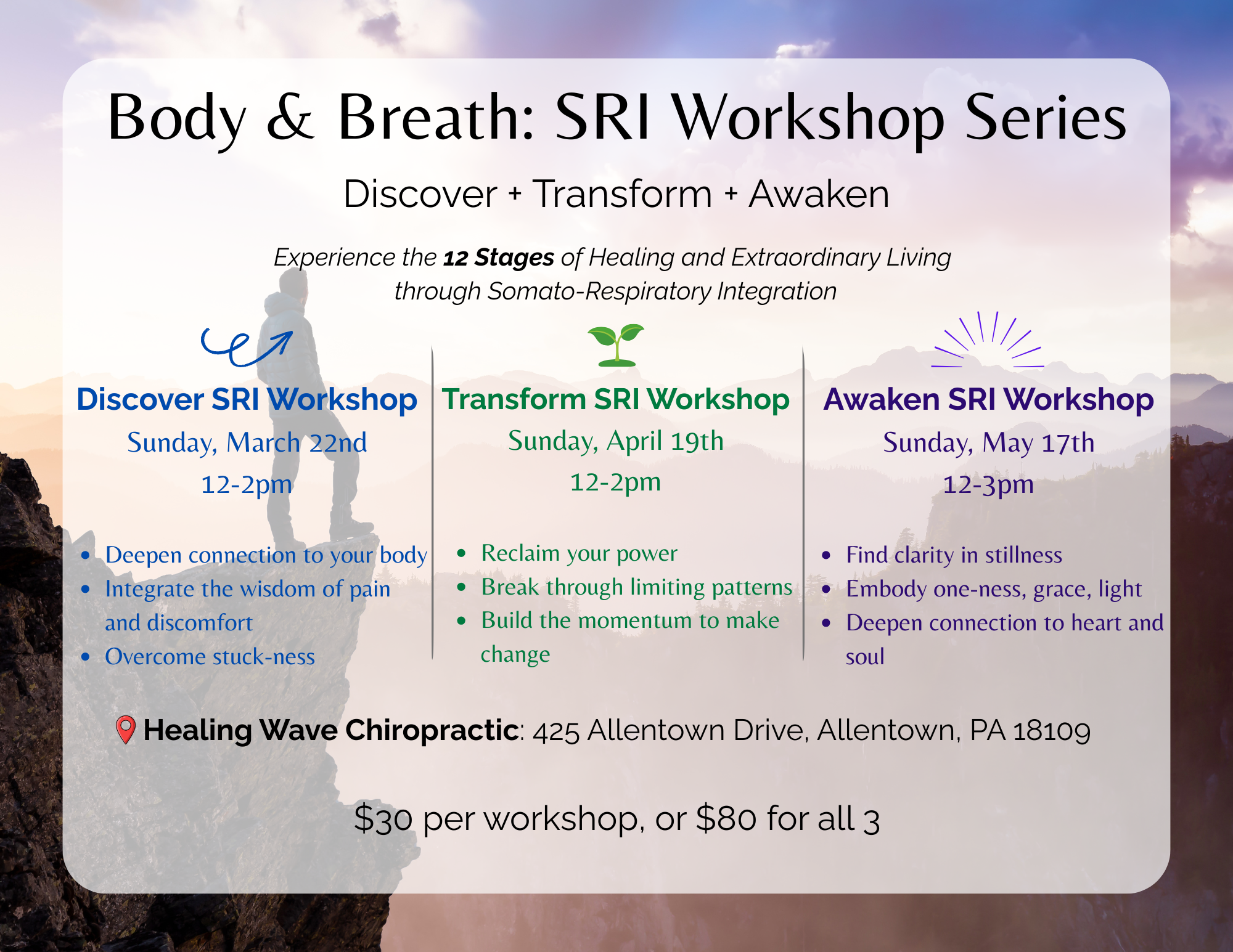 Cost: $30 per workshop or $80 for all 3 in series